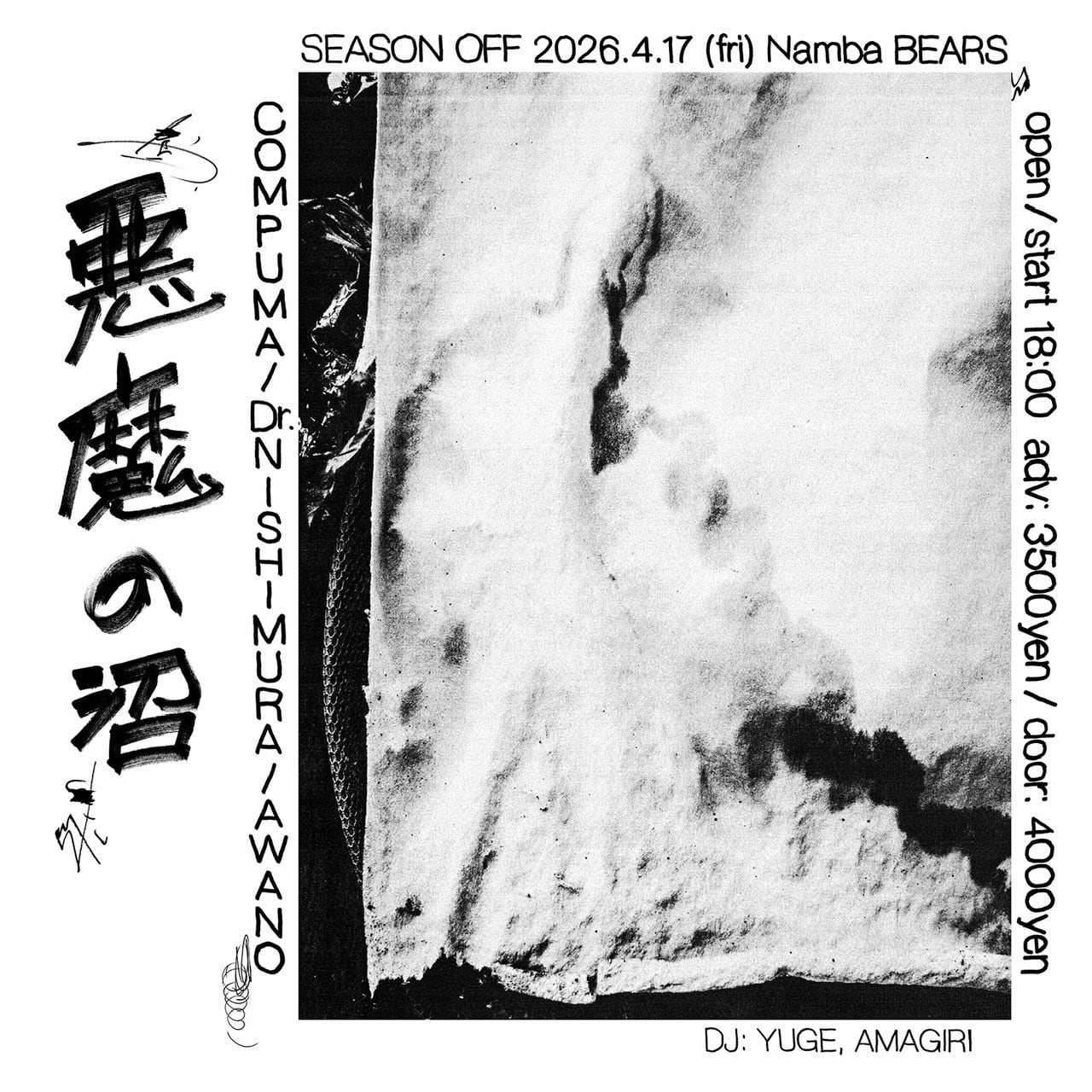 2026年4月17日に大阪の難波ベアーズで開催された『SEASON OFF』のフライヤーを落とし込んだロングスリーブTシャツ。